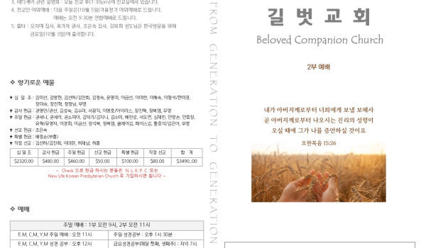 9월 21일 주일 예배 주보(전교인 성경공부19-21일)