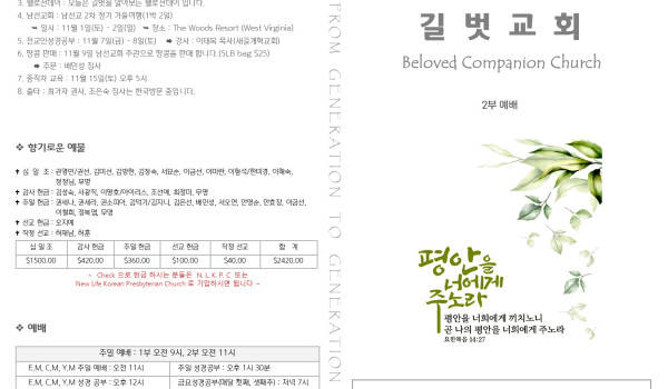 11월 2일 주일 예배 주보