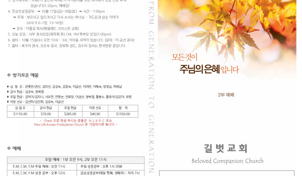 10월 5일 주일 예배 주보