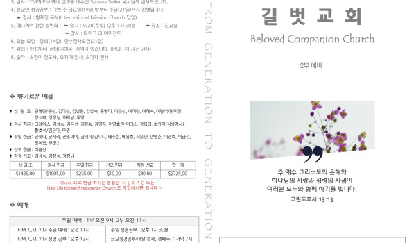 9월 14일 주일 예배 주보