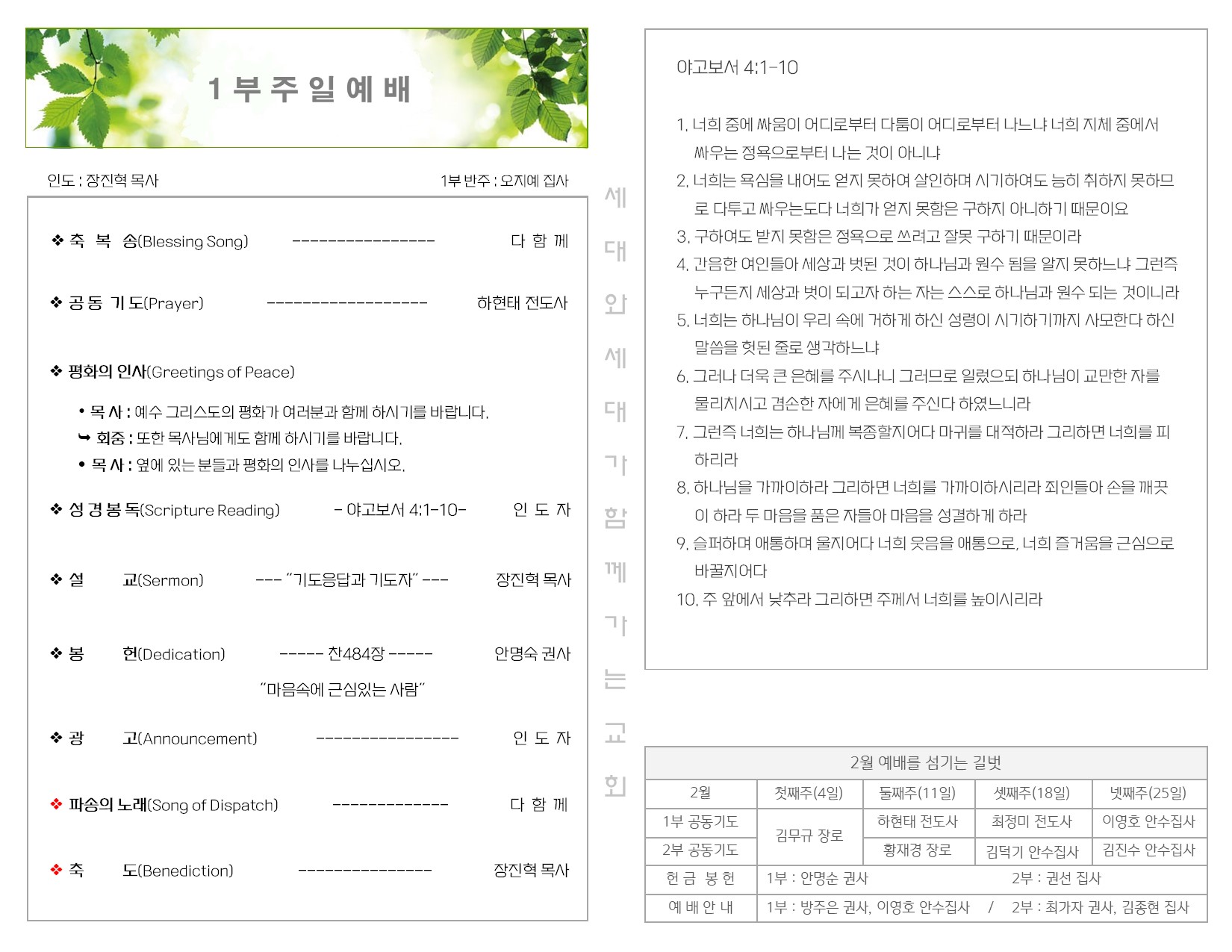 2월 11일 주일 예배 주보 Publish on February 13,2024 | 길벗교회 페이지 정보 작성자 길벗교회 댓글 0건 조회 1,932회 작성일 24-02-13 04:59 목록 본문 2월 11일 주일 예배 주보 이전글2월 18일 주일 예배 주보 24.02.20 다음글2월 4일 설립주일 예배 24.02.06 댓글 0 댓글목록 등록된 댓글이 없습니다. 목록