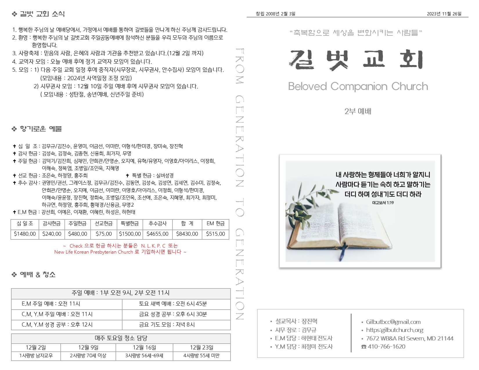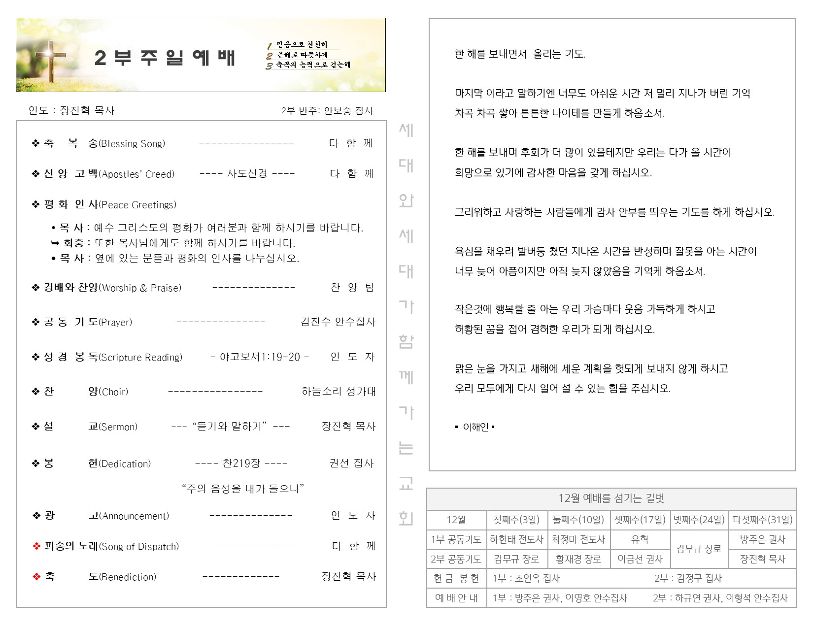 11월 26일 주일 예배 주보 Publish on November 28,2023 | 길벗교회 페이지 정보 작성자 길벗교회 댓글 0건 조회 2,153회 작성일 23-11-28 05:17 목록 본문 11월 26일 주일 예배 주보 이전글12월 3일 주일 예배 주보 23.12.05 다음글11월 26일 추수감사 주일 예배 주보 23.11.21 댓글 0 댓글목록 등록된 댓글이 없습니다. 목록