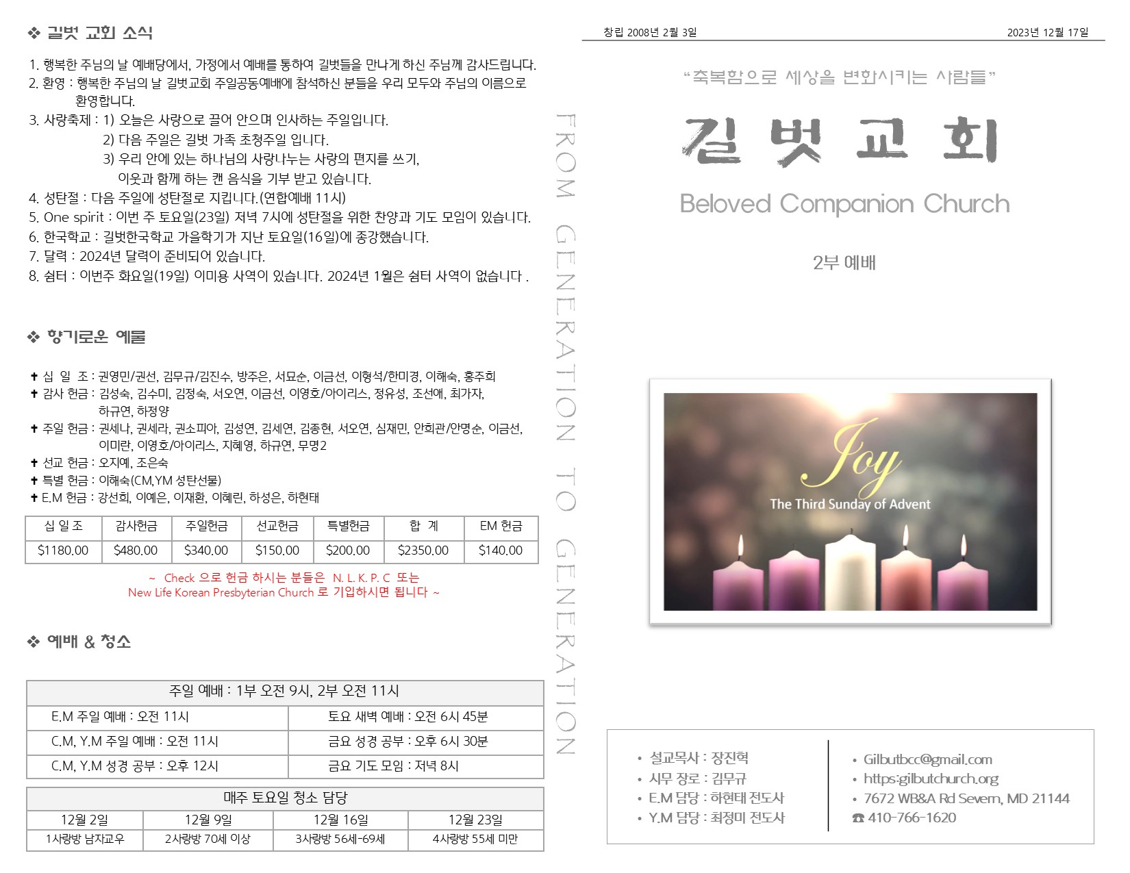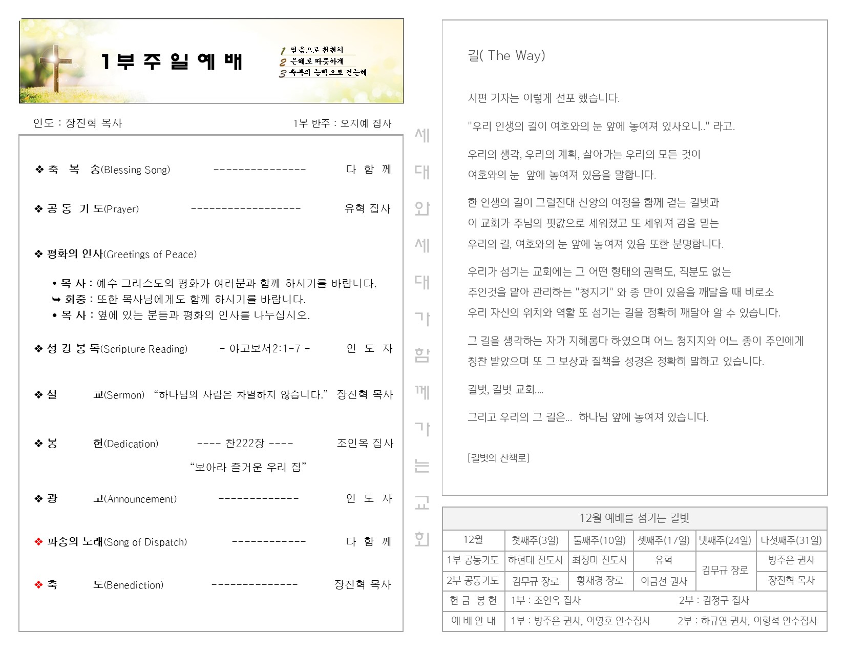 12월 17일 주일 예배 주보 Publish on December 20,2023 | 길벗교회 페이지 정보 작성자 길벗교회 댓글 0건 조회 2,113회 작성일 23-12-20 07:14 목록 본문 12월 17일 주일 예배 주보 이전글12월 24일 성탄 주일 예배 주보 23.12.26 다음글12월 10일 주일예배 주보 23.12.12 댓글 0 댓글목록 등록된 댓글이 없습니다. 목록