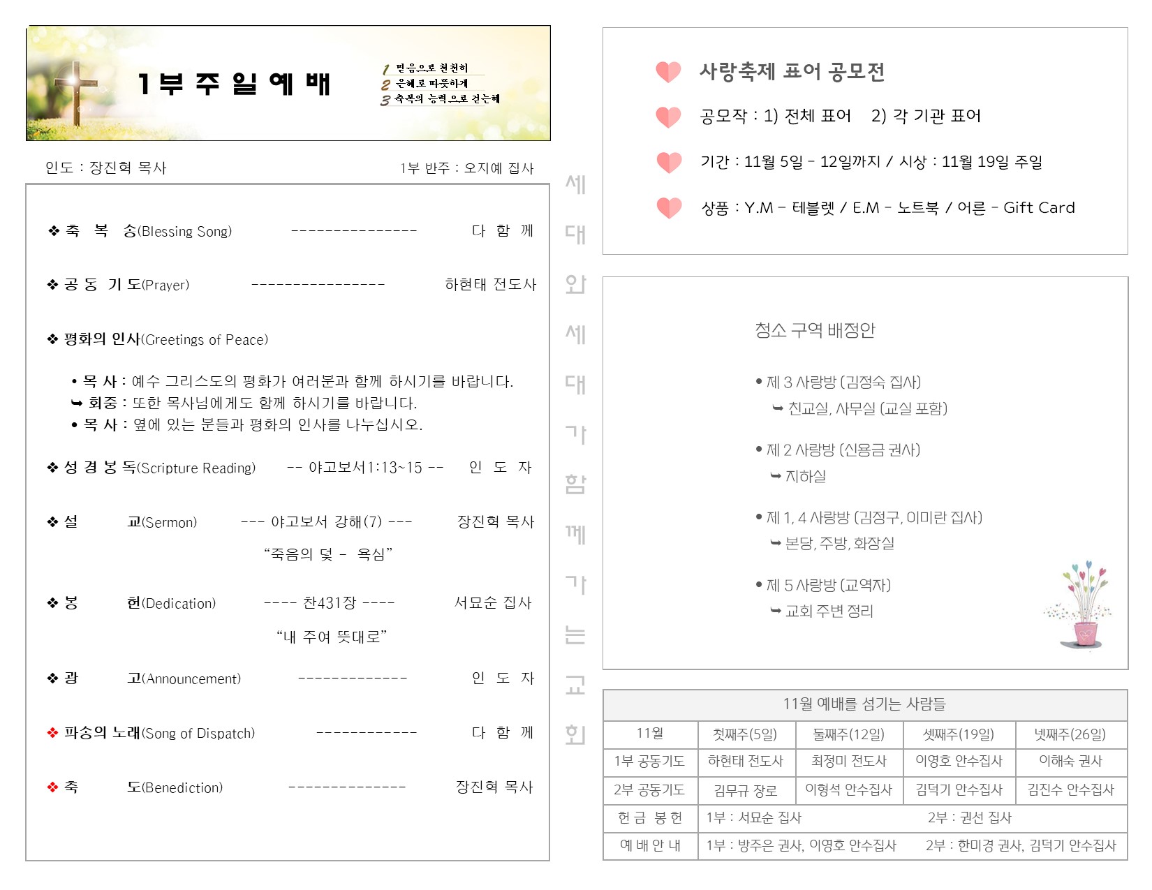 11월 5일 주일 예배 주보 Publish on November 07,2023 | 길벗교회 페이지 정보 작성자 길벗교회 댓글 0건 조회 1,683회 작성일 23-11-07 05:59 목록 본문 11월 5일 주일 예배 주보 이전글11월 12일 주일 예배 주보 23.11.15 다음글10월 29일 주일 예배 주보 23.10.31 댓글 0 댓글목록 등록된 댓글이 없습니다. 목록