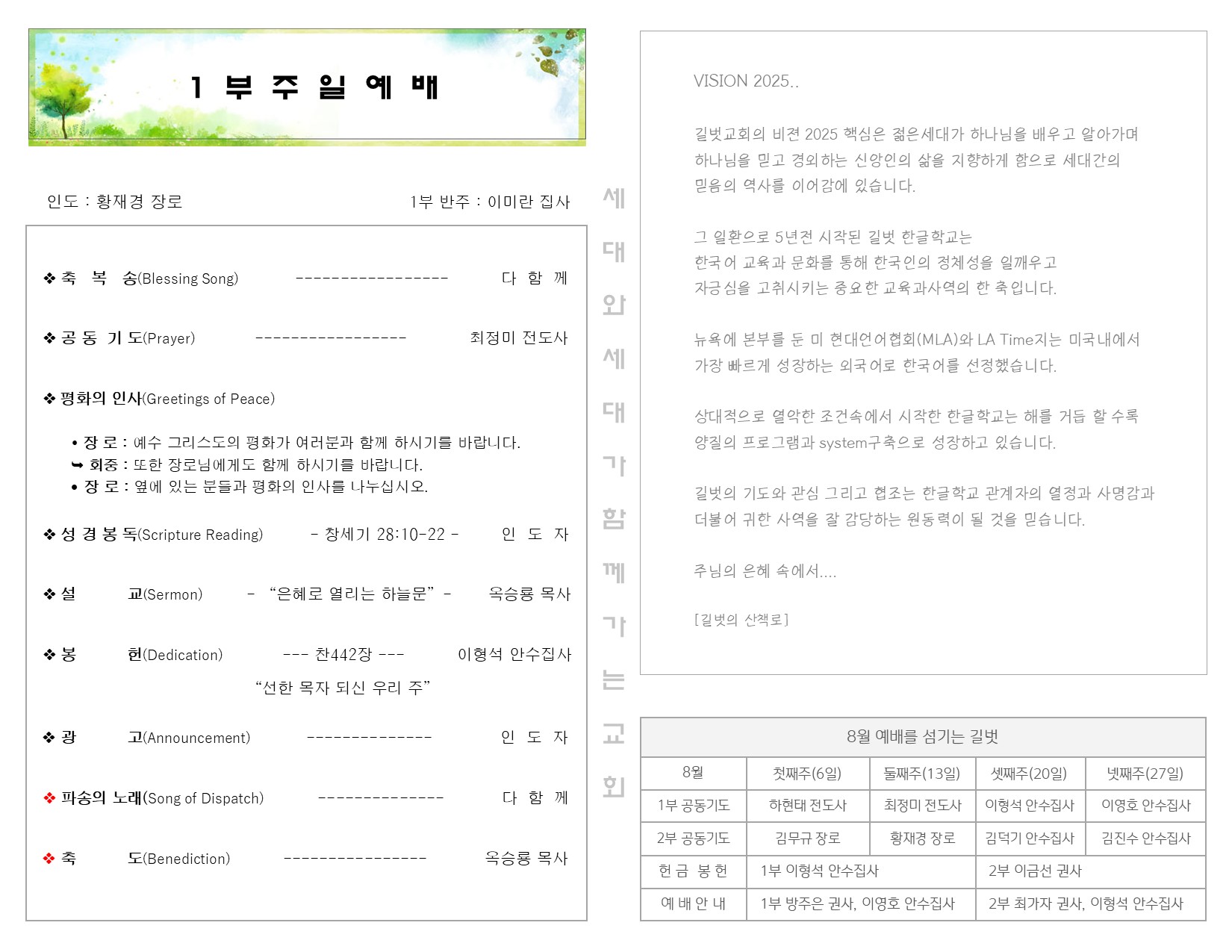 8월 13일 주일 예배 주보 Publish on August 15,2023 | 길벗교회 페이지 정보 작성자 길벗교회 댓글 0건 조회 1,557회 작성일 23-08-15 11:47 목록 본문 8월 13일 주일 예배 주보 이전글8월 20일 주일 예배 주보 23.08.22 다음글8월 6일 주일 예배 주보 23.08.08 댓글 0 댓글목록 등록된 댓글이 없습니다. 목록