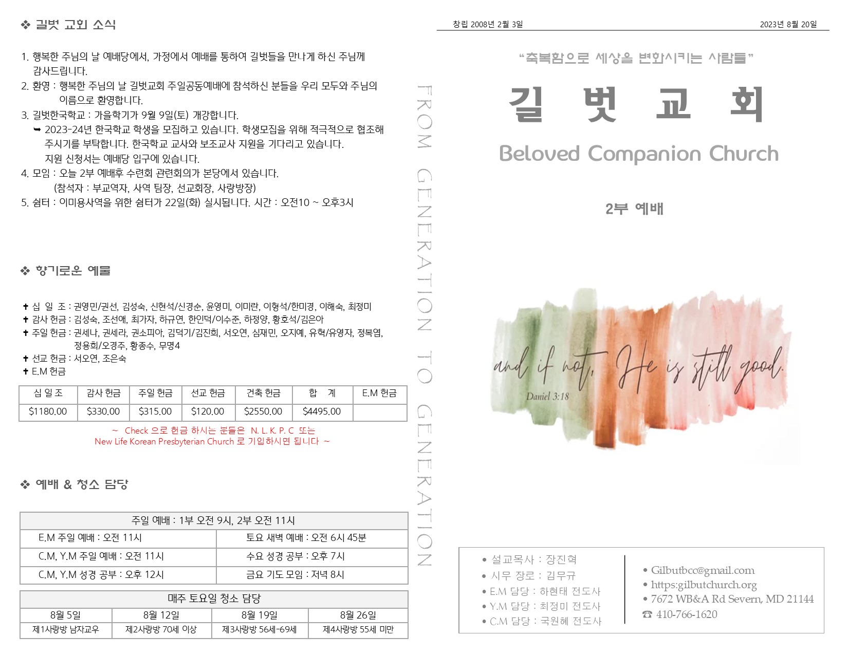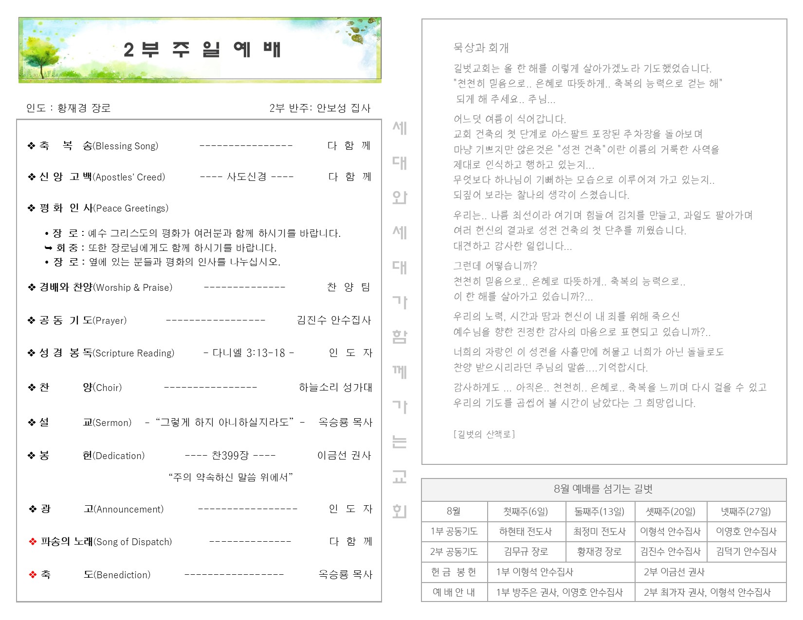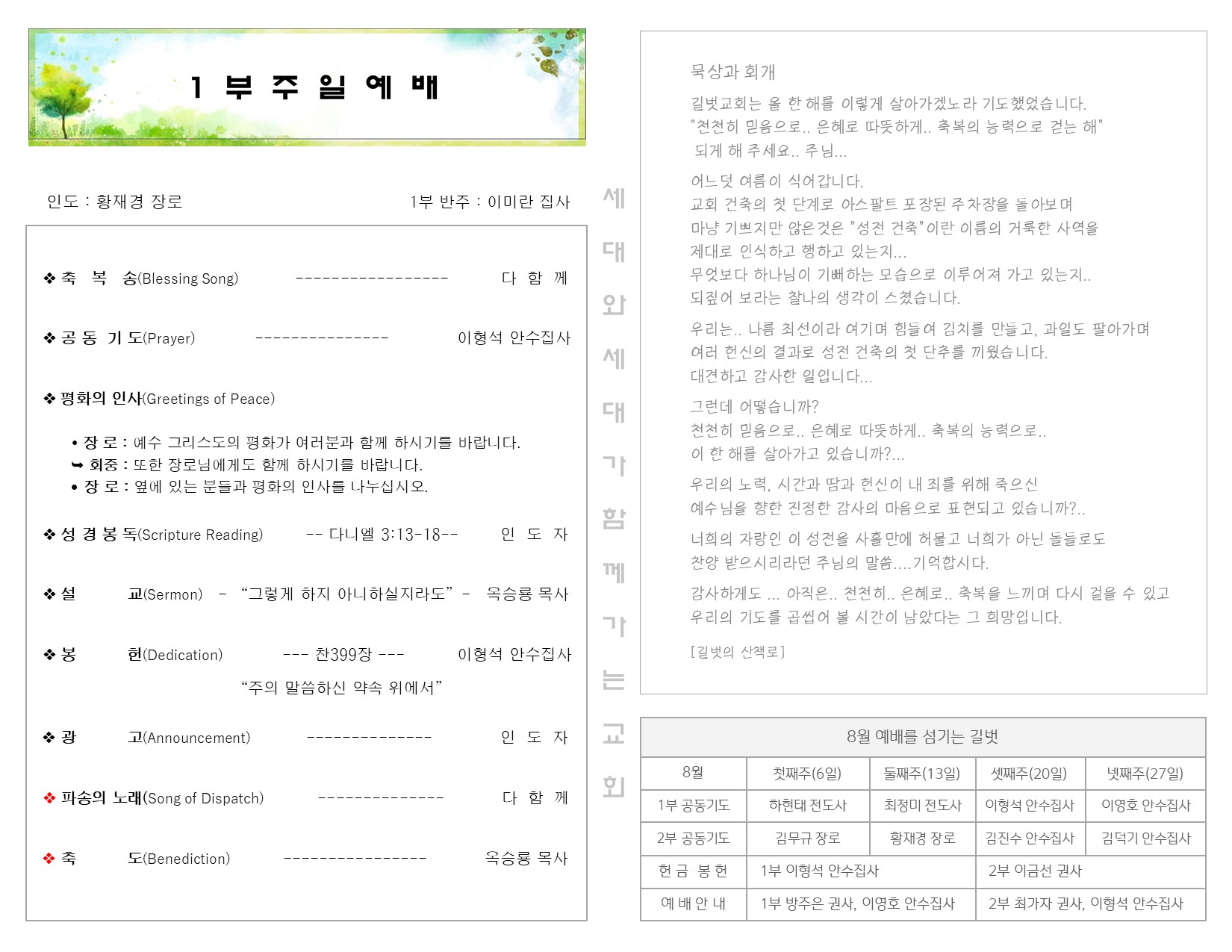 8월 20일 주일 예배 주보 Publish on August 22,2023 | 길벗교회 페이지 정보 작성자 길벗교회 댓글 0건 조회 1,508회 작성일 23-08-22 04:58 목록 본문 8월 20일 주일 예배 주보 이전글8월 27일 주일 예배 주보 23.08.29 다음글8월 13일 주일 예배 주보 23.08.15 댓글 0 댓글목록 등록된 댓글이 없습니다. 목록