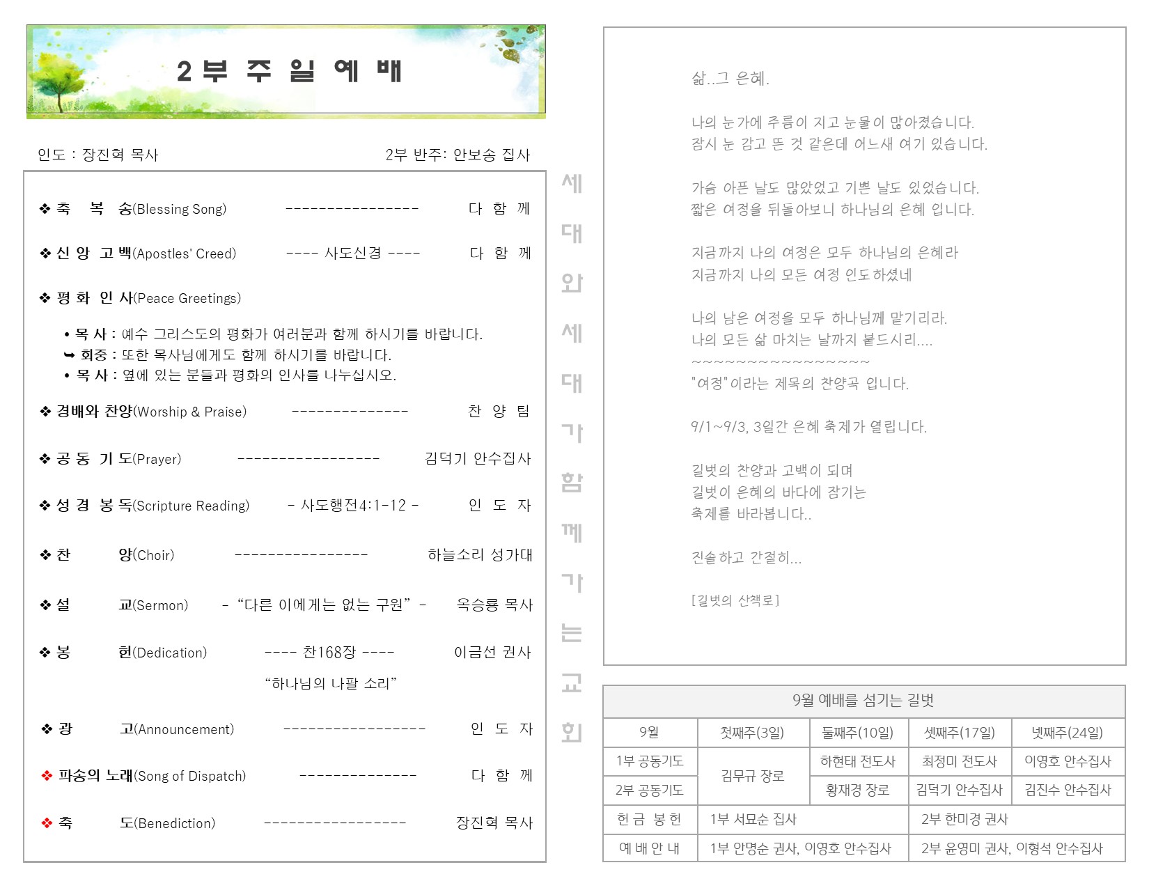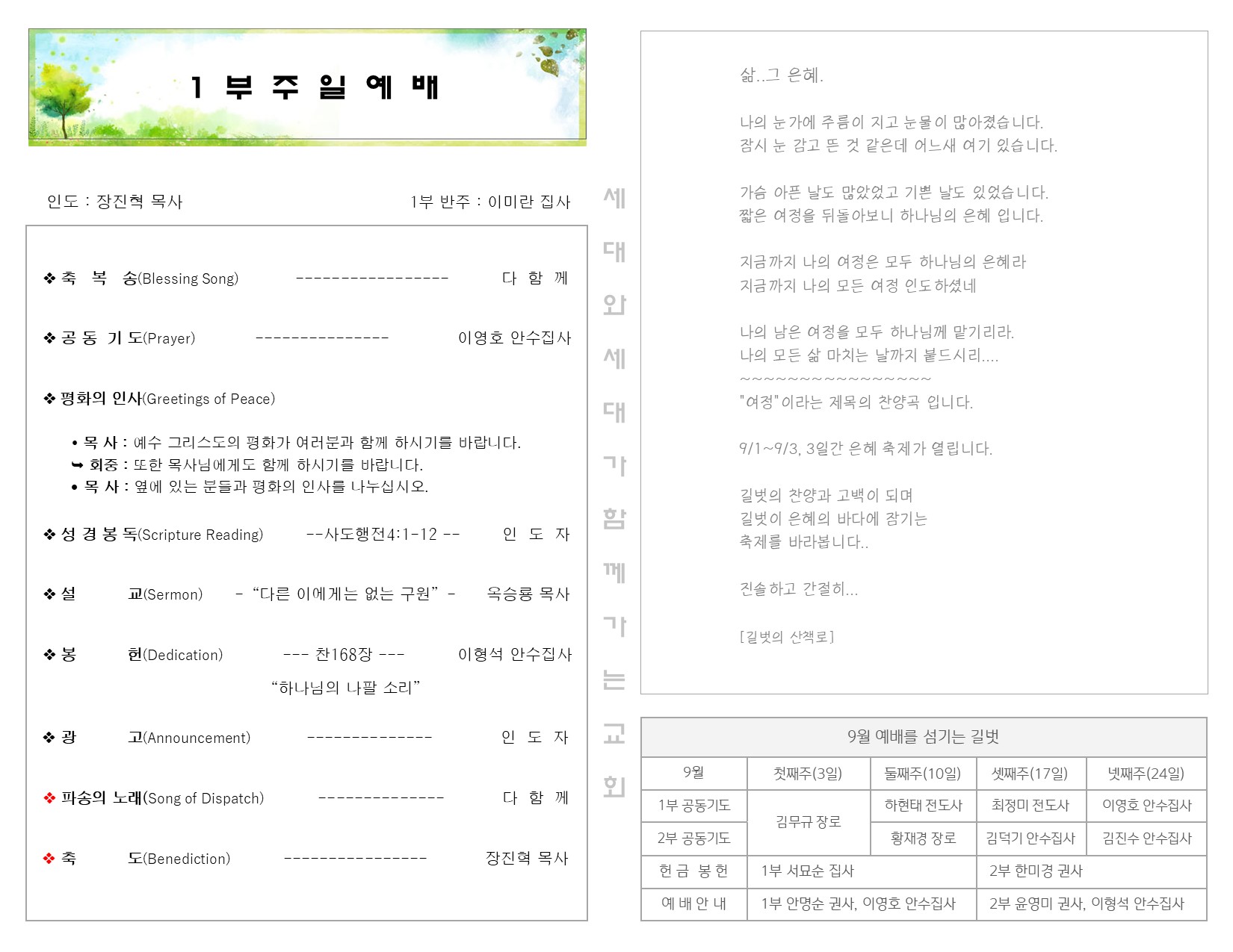 8월 27일 주일 예배 주보 Publish on August 29,2023 | 길벗교회 페이지 정보 작성자 길벗교회 댓글 0건 조회 1,702회 작성일 23-08-29 04:59 목록 본문 8월 27일 주일 예배 주보 이전글9월 3일 주일 예배 주보 23.09.06 다음글8월 20일 주일 예배 주보 23.08.22 댓글 0 댓글목록 등록된 댓글이 없습니다. 목록