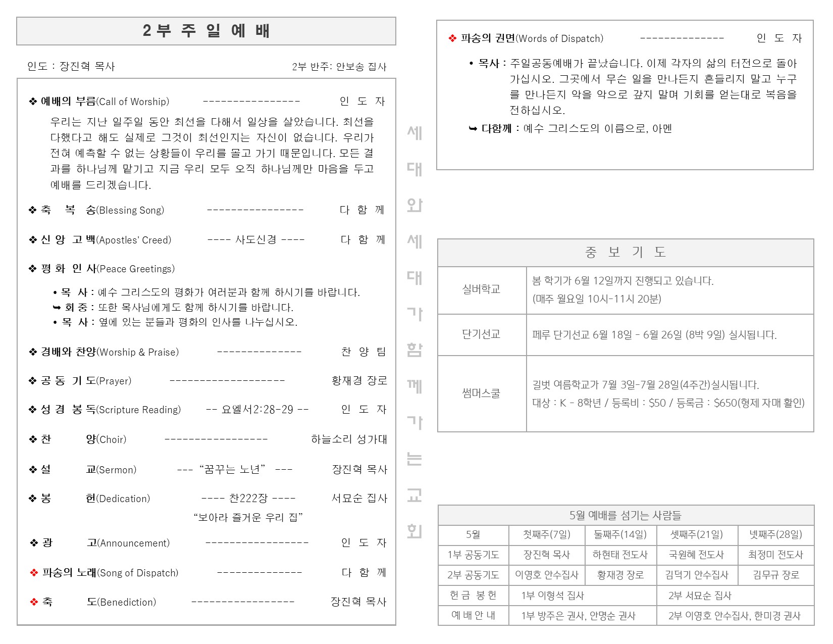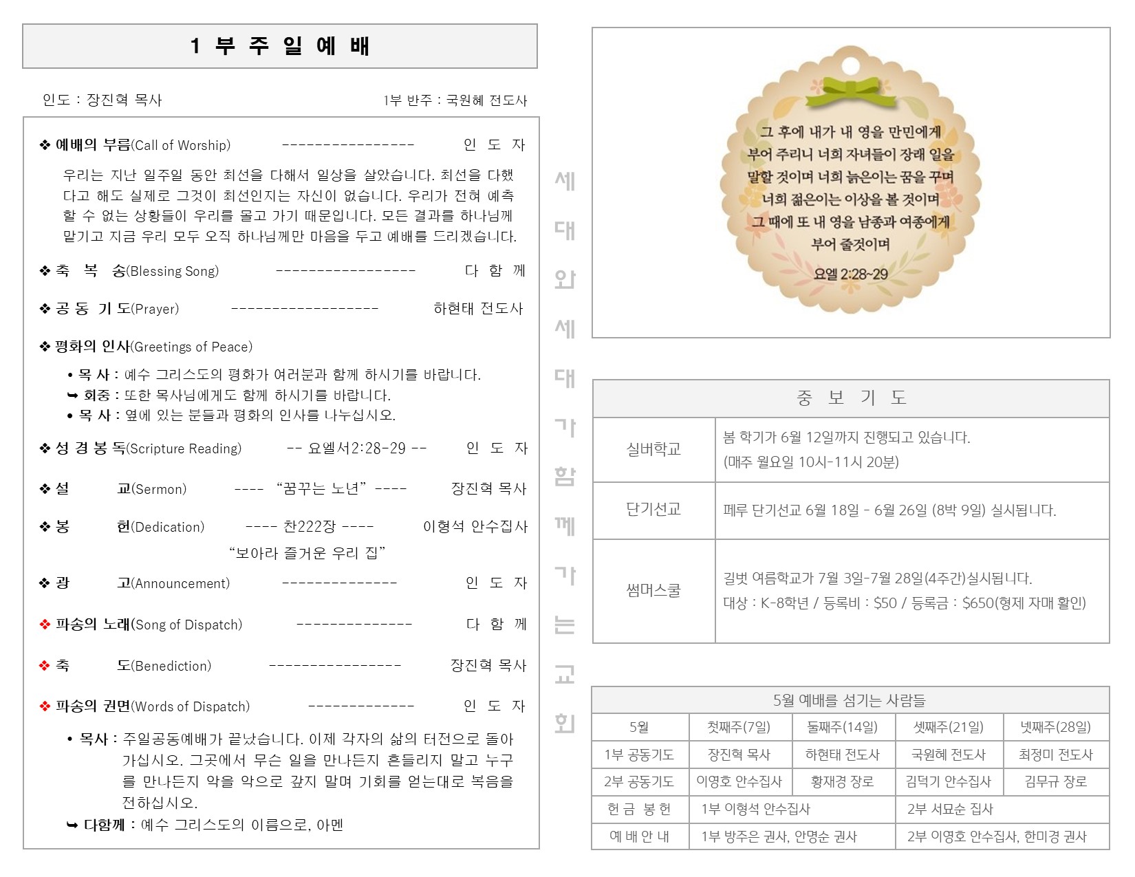 5월 14일 주일 예배 주보 Publish on May 16,2023 | 길벗교회 페이지 정보 작성자 길벗교회 댓글 0건 조회 2,174회 작성일 23-05-16 05:05 목록 본문 5월 14일 주일 예배 주보 이전글5월 21일 주일 예배 주보 23.05.23 다음글5월 7일 주일 예배 주보 23.05.08 댓글 0 댓글목록 등록된 댓글이 없습니다. 목록