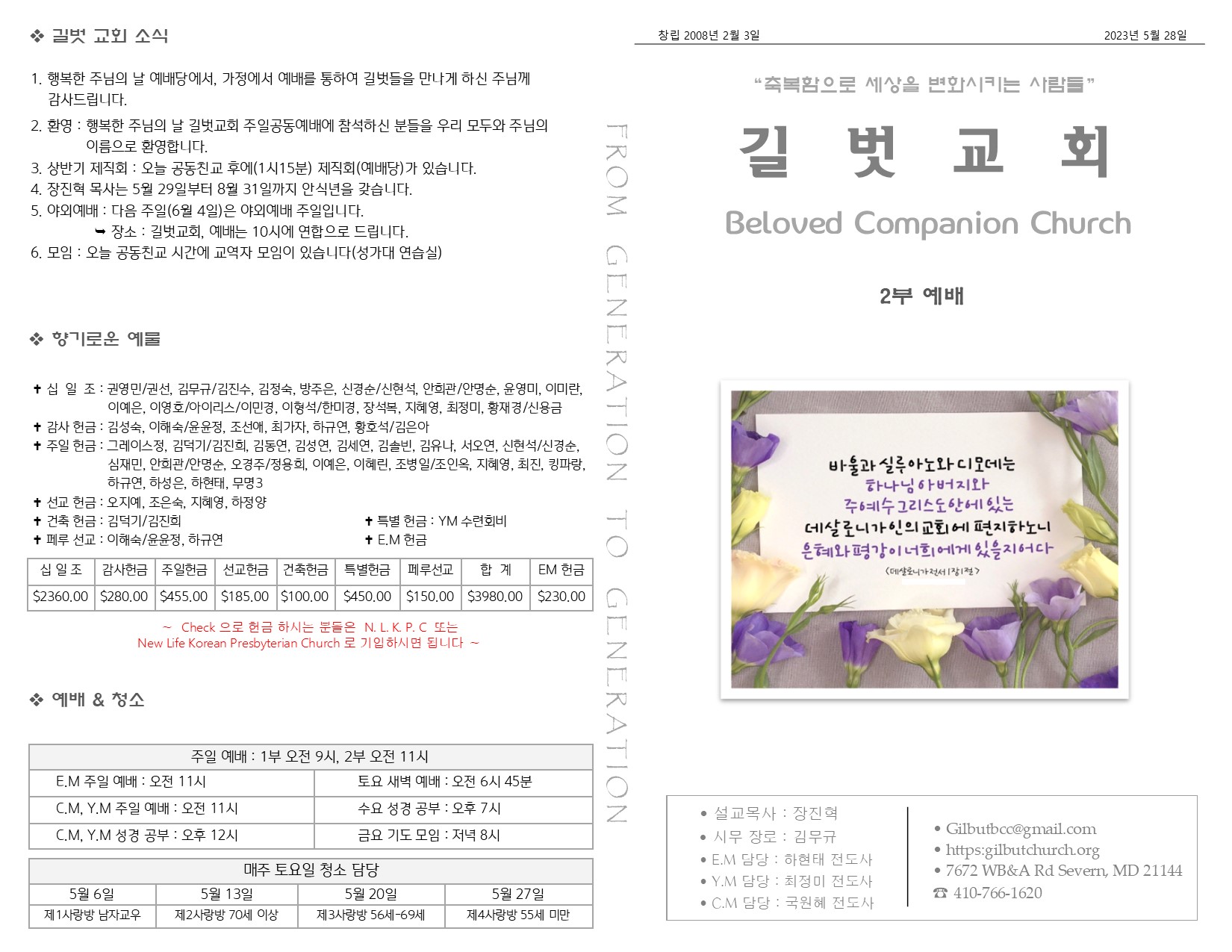 5월 28일 주일 예배 주보 Publish on May 30,2023 | 길벗교회 페이지 정보 작성자 길벗교회 댓글 0건 조회 1,898회 작성일 23-05-30 03:47 목록 본문 5월 28일 주일 예배 주보 이전글6월 4일 주일 예배 주보 23.06.12 다음글5월 21일 주일 예배 주보 23.05.23 댓글 0 댓글목록 등록된 댓글이 없습니다. 목록
