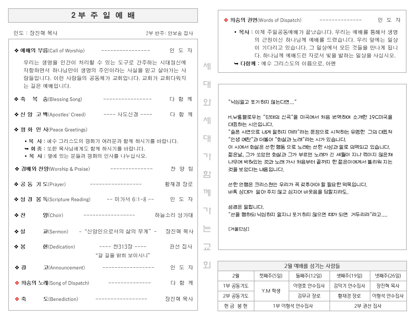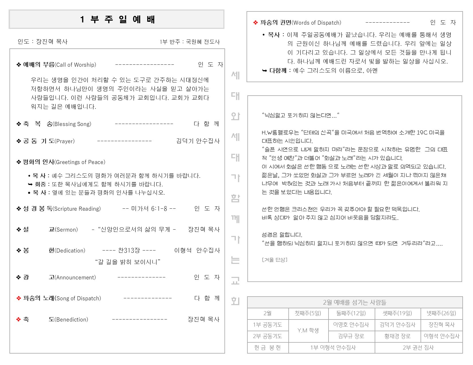 2월 19일 주일 예배 주보 Publish on February 20,2023 | 길벗교회 페이지 정보 작성자 길벗교회 댓글 0건 조회 2,178회 작성일 23-02-20 18:33 목록 본문 2월 19일 주일 예배 주보 이전글2월 26일 주일 예배 주보 23.02.28 다음글2월 12일 주일 예배 주보 23.02.13 댓글 0 댓글목록 등록된 댓글이 없습니다. 목록