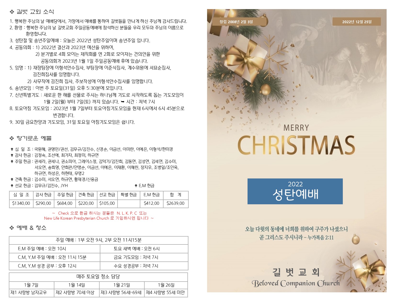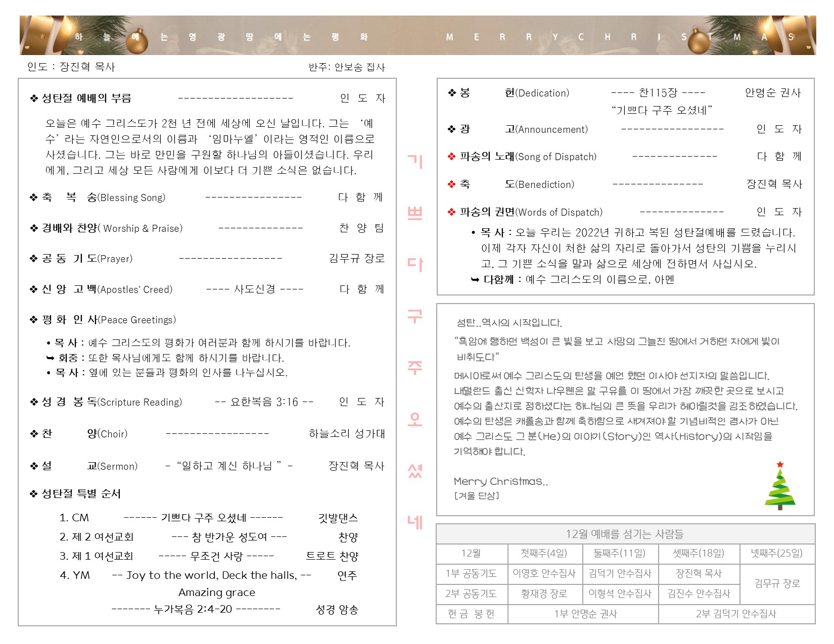 12월 25일 성탄절 주일예배 Publish on December 27,2022 | 길벗교회 페이지 정보 작성자 길벗교회 댓글 0건 조회 2,473회 작성일 22-12-27 06:18 목록 본문 12월 25일 성탄절 주일예배 이전글1월 1일 2023년 주일 예배 주보 23.01.06 다음글12월 18일 주일예배 주보 22.12.22 댓글 0 댓글목록 등록된 댓글이 없습니다. 목록