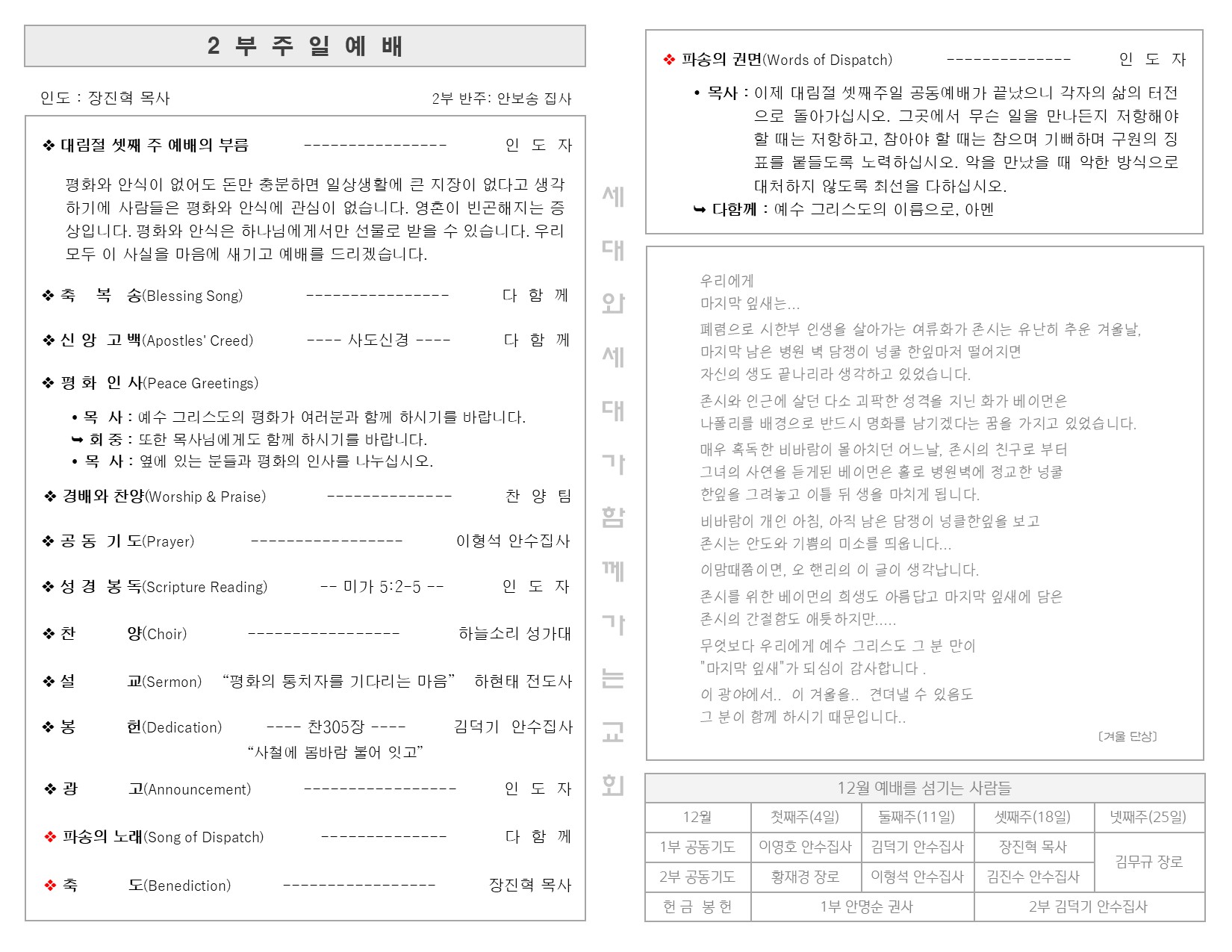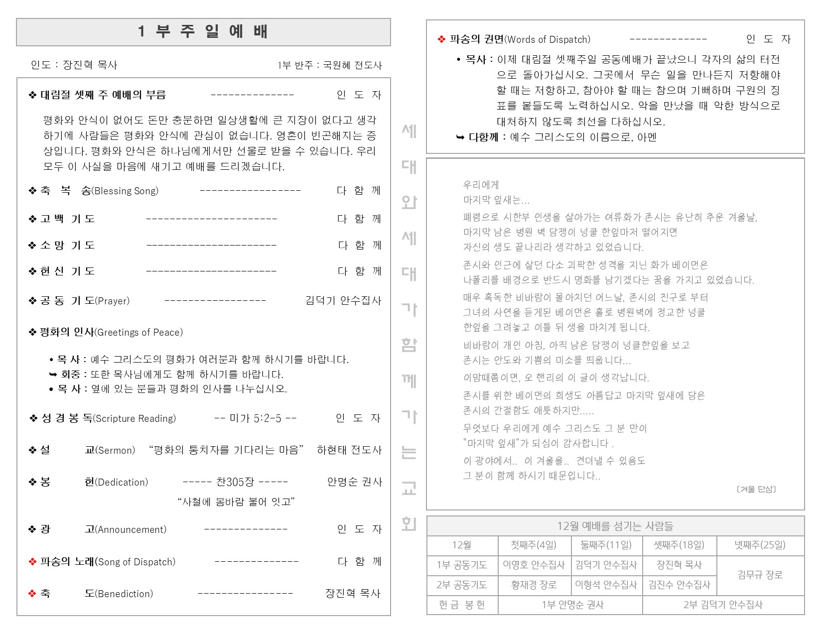 12월 11일 주일예배 주보 Publish on December 13,2022 | 길벗교회 페이지 정보 작성자 길벗교회 댓글 0건 조회 2,280회 작성일 22-12-13 05:59 목록 본문 12월 11일 주일예배 주보 이전글12월 18일 주일예배 주보 22.12.22 다음글12월 4일 주일예배 주보 22.12.06 댓글 0 댓글목록 등록된 댓글이 없습니다. 목록