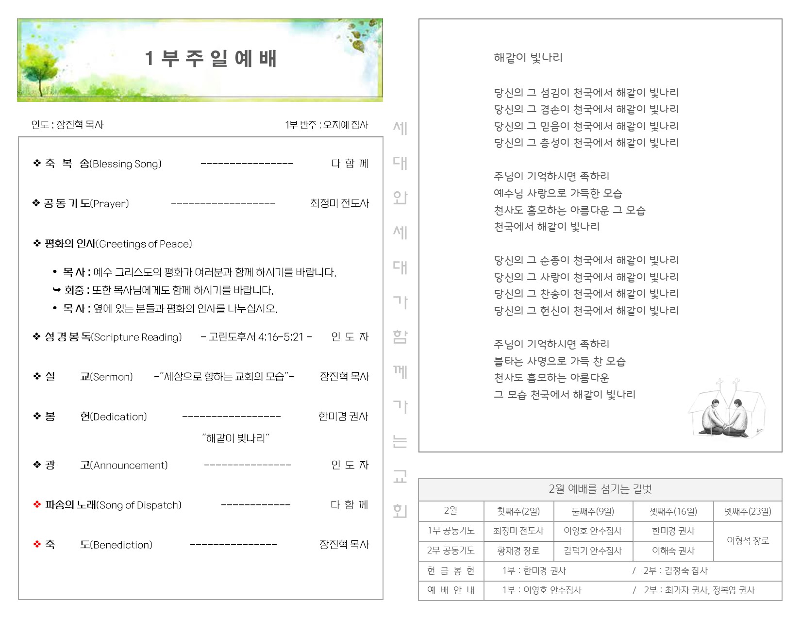 2월 2일 주일 예배 주보 Publish on February 05,2025 | 길벗교회 페이지 정보 작성자 길벗교회 댓글 0건 조회 829회 작성일 25-02-05 04:29 목록 본문 2월 2일 주일 예배 주보 이전글2월 9일 주일 예배 주보 25.02.12 다음글1월 26일 주일 예배 주보 25.01.28 댓글 0 댓글목록 등록된 댓글이 없습니다. 목록