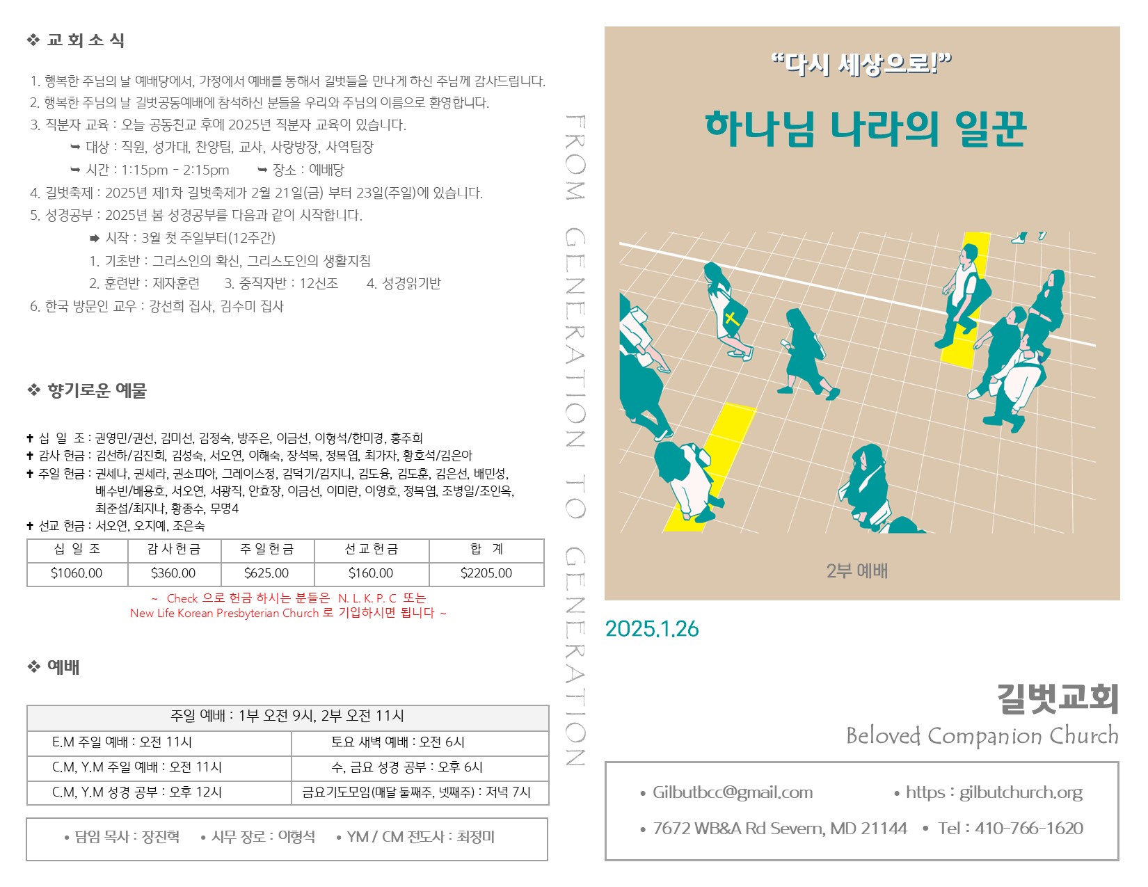 1월 26일 주일 예배 주보 Publish on January 28,2025 | 길벗교회 페이지 정보 작성자 길벗교회 댓글 0건 조회 1,303회 작성일 25-01-28 04:52 목록 본문 1월 26일 주일 예배 주보 이전글2월 2일 주일 예배 주보 25.02.05 다음글1월 19일 주일 예배 주보 25.01.22 댓글 0 댓글목록 등록된 댓글이 없습니다. 목록