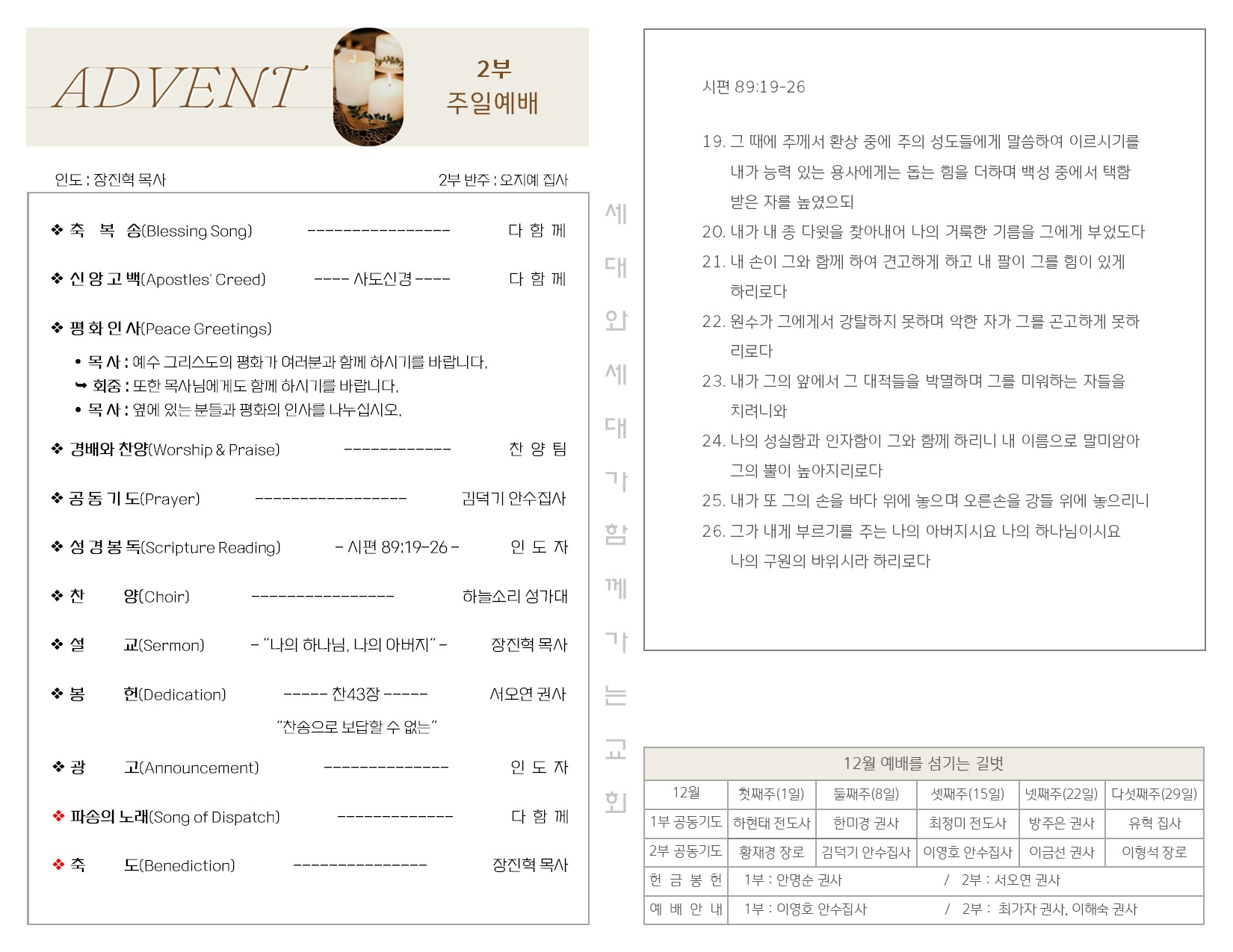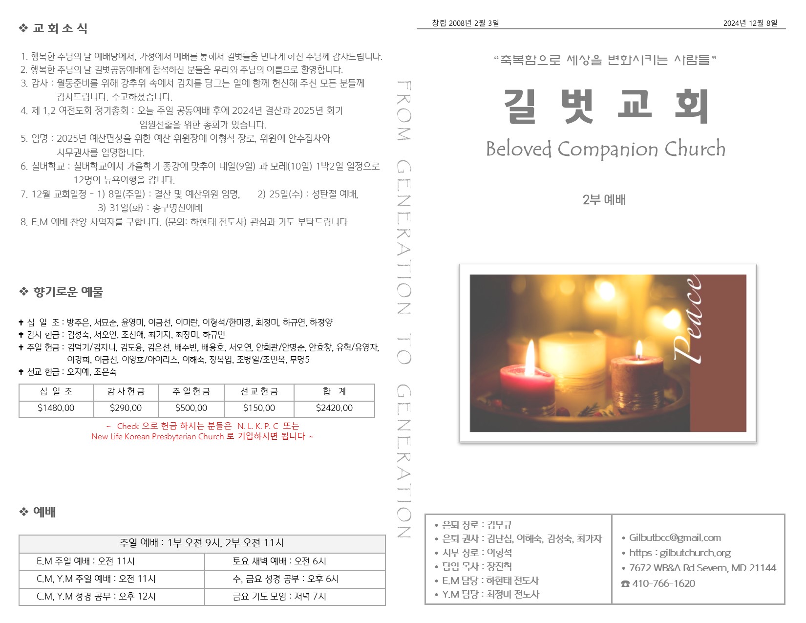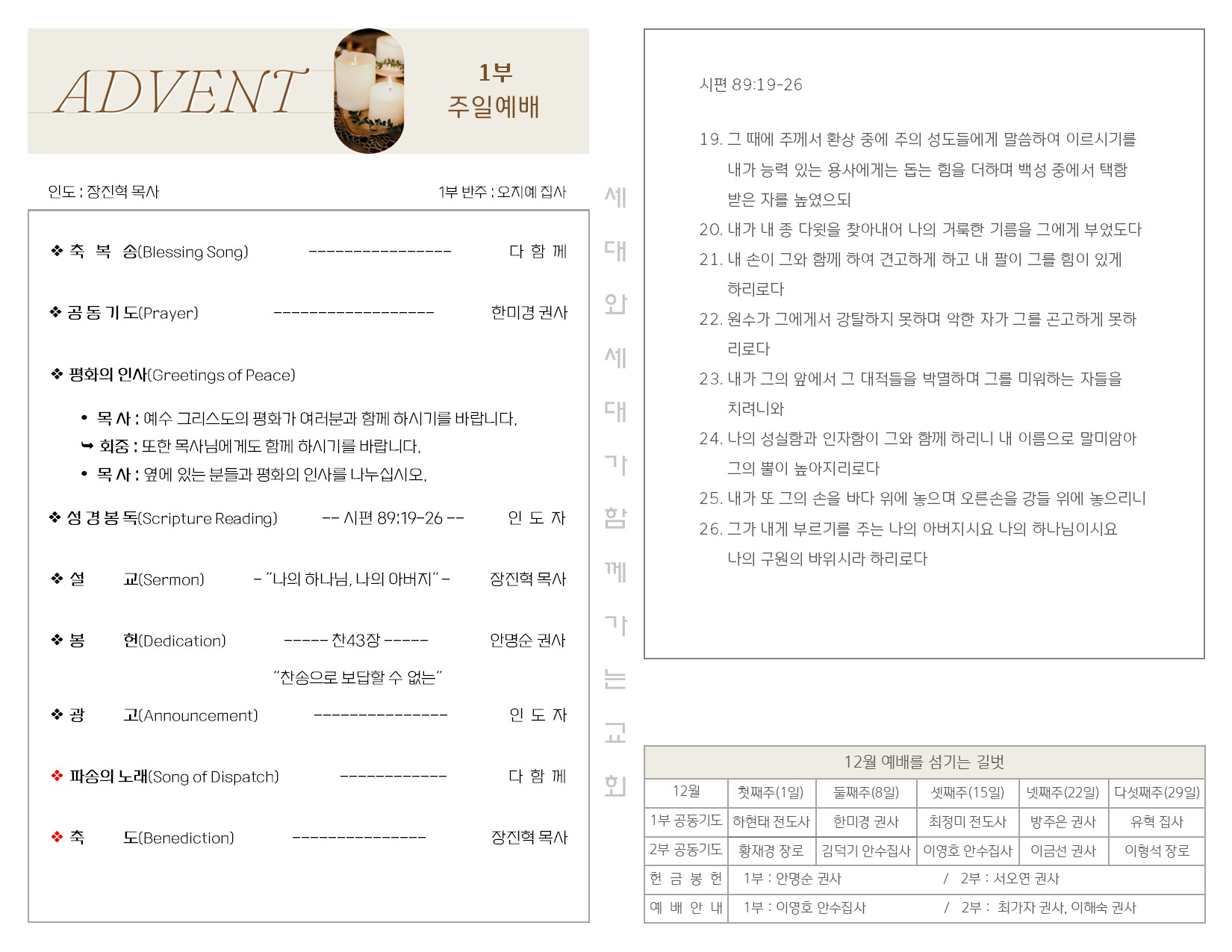 12월 8일 주일 예배 주보 Publish on December 10,2024 | 길벗교회 페이지 정보 작성자 길벗교회 댓글 0건 조회 1,330회 작성일 24-12-10 18:27 목록 본문 12월 8일 주일 예배 주보 이전글12월 15일 주일 예배 주보 24.12.18 다음글12월 1일 주일 예배 주보 24.12.03 댓글 0 댓글목록 등록된 댓글이 없습니다. 목록