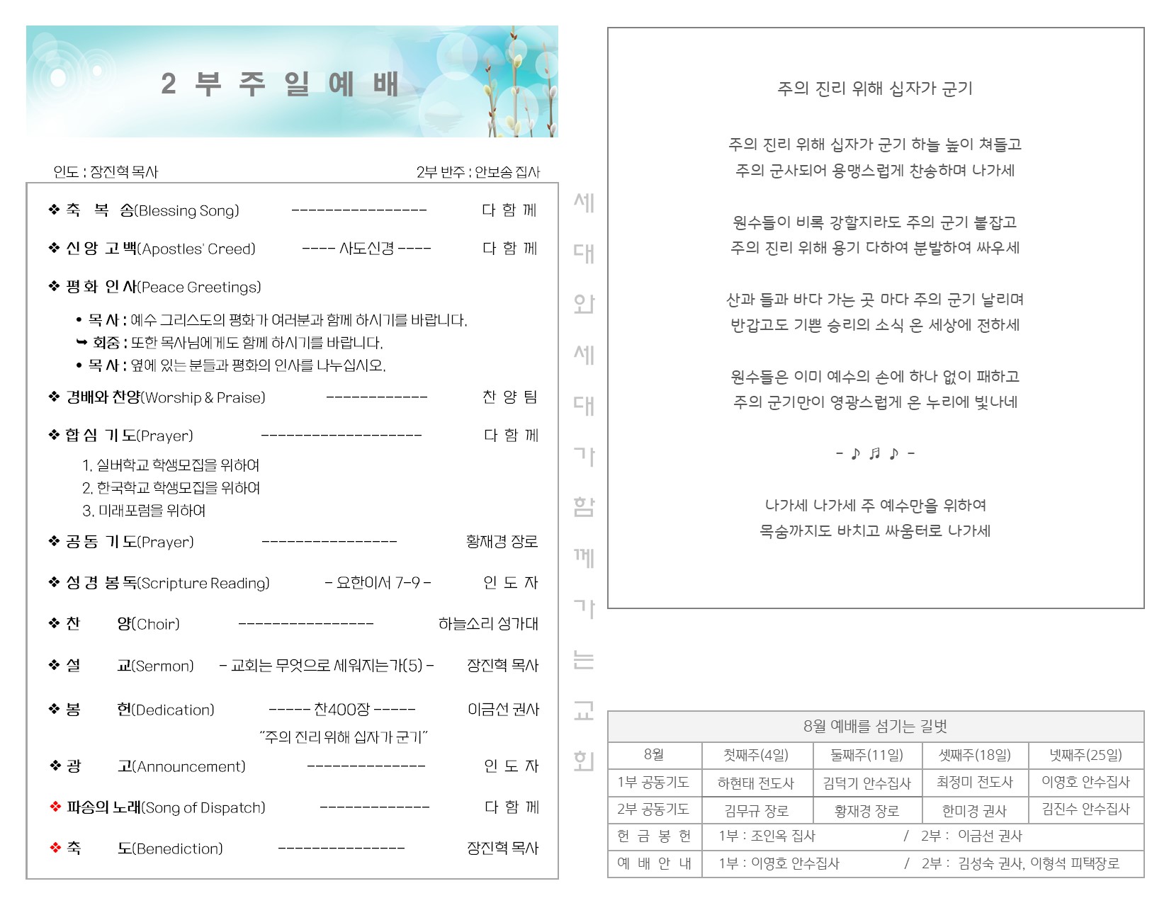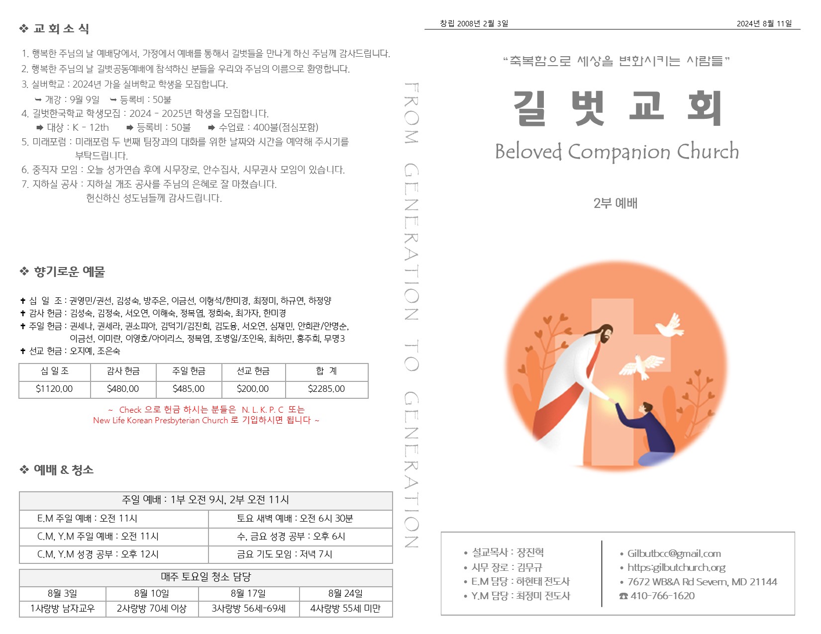 8월 11일 주일 예배 주보 Publish on August 13,2024 | 길벗교회 페이지 정보 작성자 길벗교회 댓글 0건 조회 1,136회 작성일 24-08-13 05:00 목록 본문 8월 11일 주일 예배 주보 이전글8월 18일 주일 예배 주보 24.08.21 다음글8월 4일 주일 예배 주보 24.08.06 댓글 0 댓글목록 등록된 댓글이 없습니다. 목록