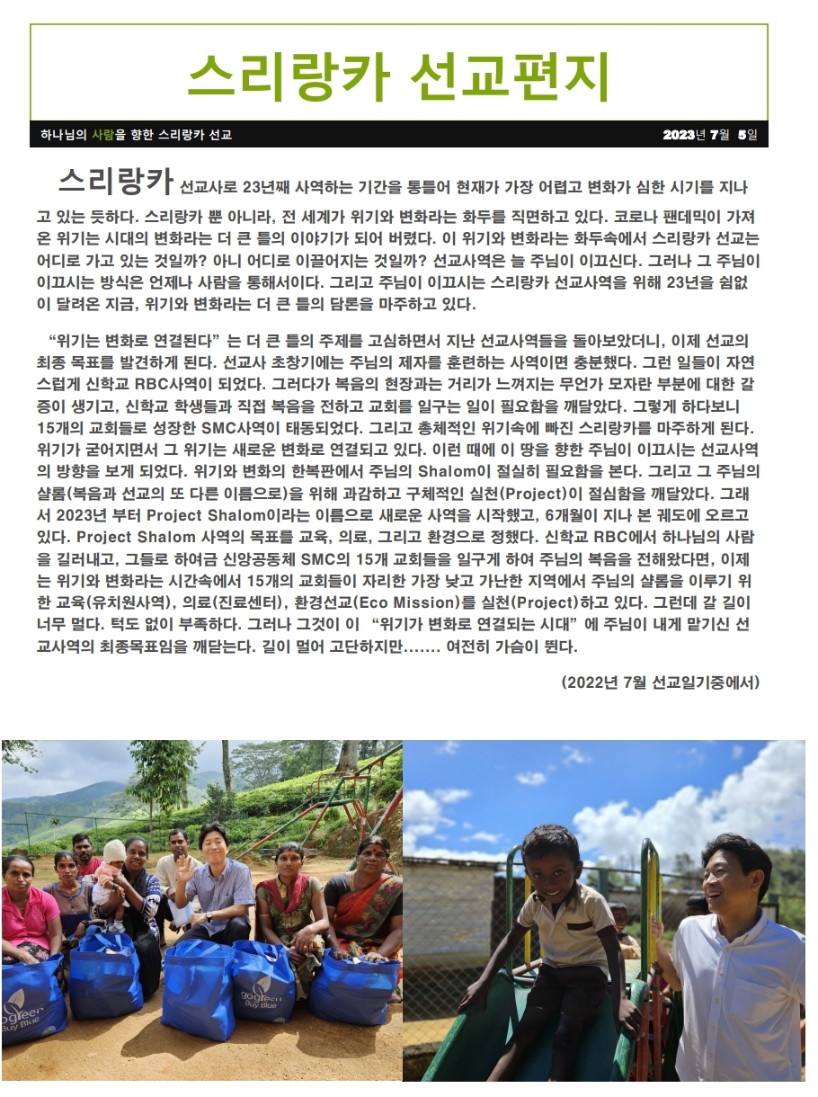 스리랑카 선교편지 페이지 정보 작성자 길벗교회 댓글 0건 조회 960회 작성일 23-07-11 05:40 목록 본문 스리랑카를 위해 힘써 기도해주십시요. 한치 앞을 볼수 없으니 깊은 풍랑속에 있지만 선교사님 내외분은 예수님을 의지하여 앞으로 나아가고 있답니다. 이전글스리랑카 선교편지 23.09.06 다음글페루 단기 선교 23.06.21 목록 댓글 0 댓글목록 등록된 댓글이 없습니다.