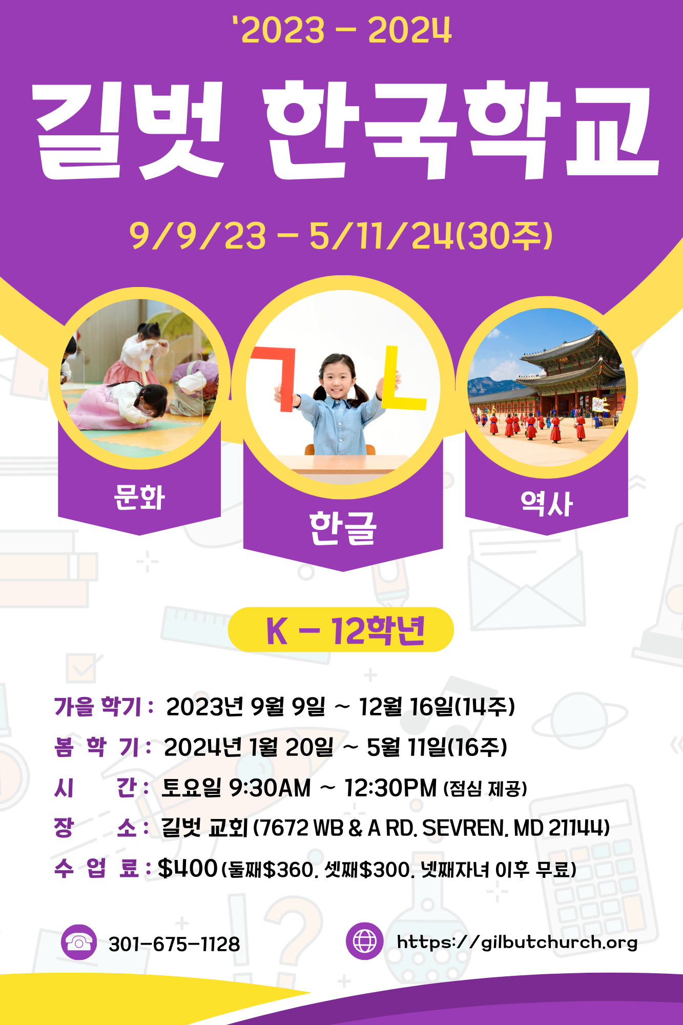 한국학교 2023-2024 한국학교 포스터 Publish on August 08,2023 | 길벗교회