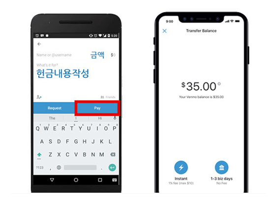 구글플레이스토어(안드로이드) 또는 앱스토어(아이폰)에 들어가서 venmo 앱을 검색하여 설치 후 sign up을 합니다. (개인 은행정보를 기입하나 수수료는 없습니다)